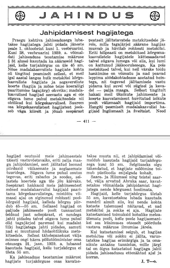 Действующий закон об охоте позволяет охотникам охотиться на зайцев с 1 октября по 1 февраля. До 28 февраля 1939 г. на основании § 31 Положения об осуществлении Закона об охоте) разрешалось использовать таких гончих, высота которых в холке не более 45 см. Требование к низкорослым гончим было обусловлено главным образом тем, что у нас каждый год дикая косуля становилась жертвой высокорослых гончих и собак смешанных пород (в результате спаривания гончей и некоторых других видов собак); низкорослые гончие, с другой стороны, не так опасны для косуль, как высокорослые в условиях глубокого снега. Большая часть высокорослых гончих бегает очень быстро и поэтому догоняет преследуемых косуль, в результате чего такая гончая загоняет и уничтожает большое количество косуль. Особенно легко косули доступны для высокорослых гончих зимой с глубоким снегом или когда снег покрыт ледяной коркой. Также косули зимой, когда для них невозможно добыть свежий корм и приходится довольствоваться сеном, размещенным на прикормочных местах, не так сильны, чтобы противостоять преследованию, как летом или осенью или весной - по голой земле. Из-за этого мы стали импортировать гончих из-за рубежа отдельными охотниками и лицами, заинтересованными в разведении собак. В основном низкорослые гончие были получены из Англии и Швейцарии. Эти гончие оказались вполне приемлемыми для наших охотников, особенно при охоте по голой земле, потому что преследуемые животные ограничивались более мелкой и медленной добычей. В случае глубокого снега активность, особенно на болотах и топях, оказалась непосильной для таких собак. В результате некоторые наши охотники стали спаривать низкорослых гончих с высокорослыми, в результате чего в последнее время появилось большое количество полу-высоких гончих высотой 45-55 см. Такие гончие были признаны многими охотниками именно потому, что охота с ними по глубокому снегу зимой дает лучшие результаты, чем охота с низкорослыми гончими и не подвергает опасности диких косуль. Исходя из этого наблюдения, решением г-на министра сельского хозяйства от 21 января 1939 г. допускается использование гончих с высотой в холке не более 55 см.