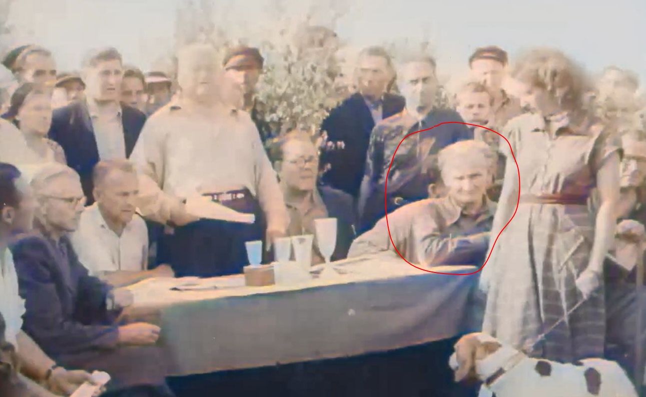 На основании этого фото можно сделать вывод, что на видео с выставки 1955 года мы можем его видеть сидящим справа. Ему было тогда 70 лет.