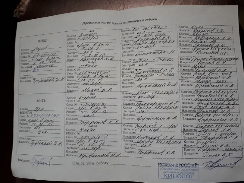 Алексей выложи родословную.Это же документ не особой секретности.Если собачка была на выставке значит у ей есть родословная,а значит все данные есть в РОРСе.Анатолий Алексеевич писал(а): 16 ноя 2019, 19:50